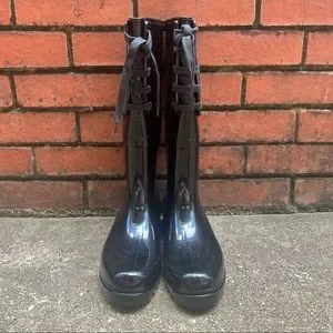 GUC Black See by Chloe Black Chunky Lug Sole Rubber Rain Boots Sz 39