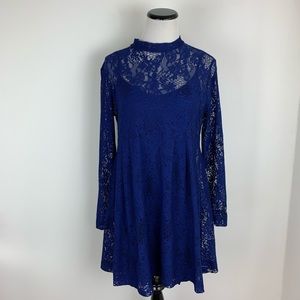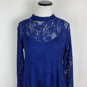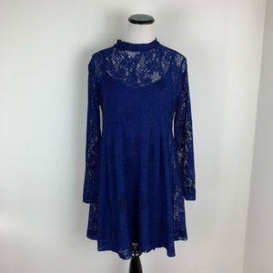 ❌ASOS Lace Long Sleeve Fit & Flare Dress Navy Sz 10