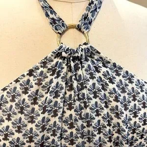 Halter neckline with goldtone ring