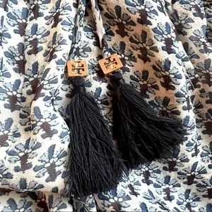 Self-tie with tassels and Tory Burch "T" logo on golden square beads