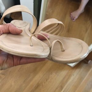 These gorgeous nude sandals are gently worn. The soles have been professionally reinforced to protect the leather soles. Very elegant and comfortable and add an extra chic factor to every outfit. 💕