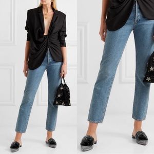 Coveted for their distinctive powder puff-inspired pompom, Aquazzura's slippers have been made in endless color and fabric combinations over the years - Kendall Jenner owns a pair in green velvet, and we love this glittery update. Made from silver Lurex and set on a tonal heel, they're a great way to dress up jeans.