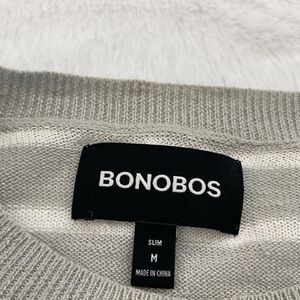 Bonobos Gray and White Linen Striped Slim Fit Sweater, size medium. Worn twice and in excellent condition. See pictures for measurements.