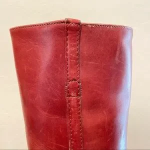 Gorgeous vintage boots in the prettiest cognac/port color. Tall shaft, almond toe, and stacked heel give these a timeless vintage esthetic. Stamped Frye logo on heel. Interior pull tabs. The most superficial scuffs/marks to upper, these are in excellent condition! Beautiful with jeans/dresses/skirts/everything!