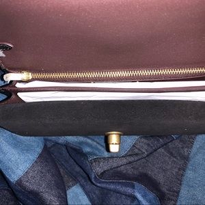 Refined calf leather and suede Brass hardware Six credit card slots Inside zip and multifunction pockets Turnlock closure, fabric lining Outside open pocket Detachable chain strap with 23" drop for shoulder or crossbody wear