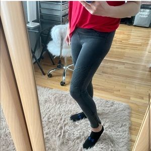 Moto jeggings with a thick elastic waistband. Great fit