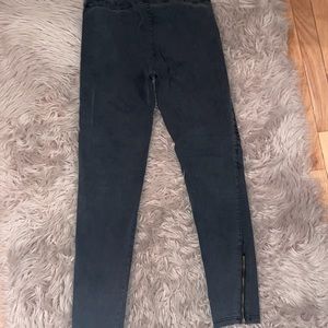 with faux front pockets. Thick, good quality. Soft! Ankle zipper detail on the outside of legs.