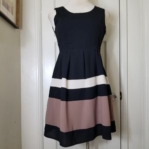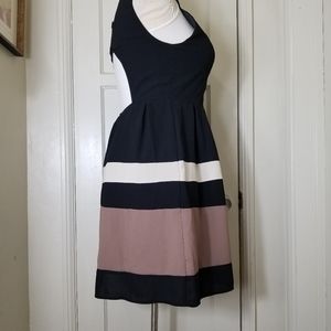 YA LOS ANGELES black tan stripe sleeveless open back fit and flare dress L