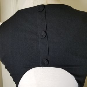 great used condition. has a small.light mark on tan lower front, please see last photo. some stretch. lined. sleeveless. side zipper. open keyhole back. fit and flare. 19 inches across armpit. 16 inches across waist. 15 inch bodice length. 36 inch length.