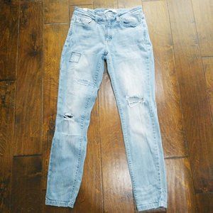 KANCAN Light Wash Blue Destroyed/Patched Skinny Jeans SZ 9/28 Waist  x 29 Inseam x9" Rise