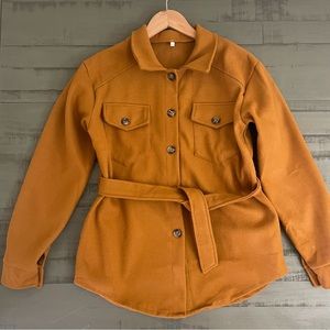 The shacket is button down with belt and side pockets