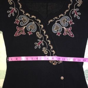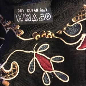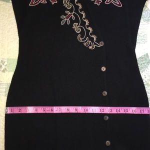 •Sewn on Embellishments both sides of the V-Neckline. Beads, Wood
