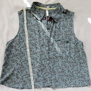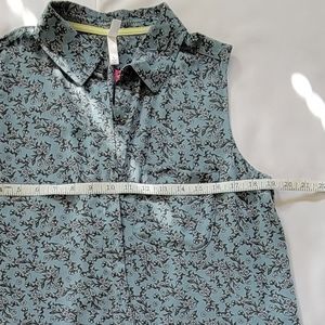 Blue/floral print sleeveless button down.