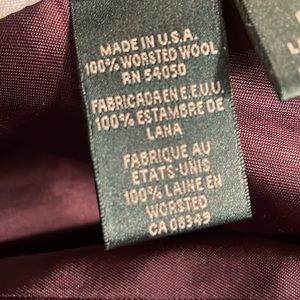 •This classy three button navy blazer has a beautiful Ralph Lauren Crest on the left pocket.