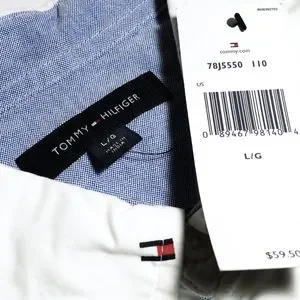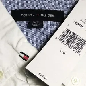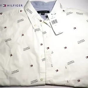 New Tommy Hilfiger Men's button-down Size L Classic fit Tommy logo short sleeves