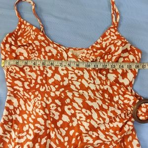Size S, worn once. I've cut off the tags because they used to stick out. it's a cotton linen fabric, no stretch. Depending on how low or high you pull the shoulder straps, it will fit max bust 34.