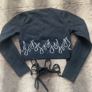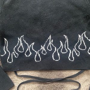 Brand Subdued, Size One Size (S), barely worn, good condition. Black cropped sweater with white flames and strings to tie around the stomach. Fits tight to skin.