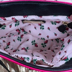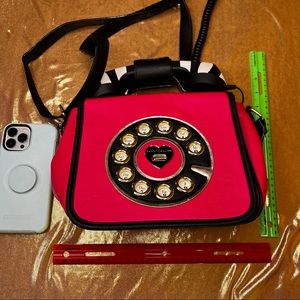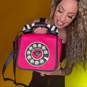 ICONIC! Betsey Johnson phone bag hot pink with black and white striped telephone