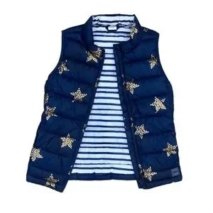 Gap kids navy blue puffer vest with gold stars, Medium