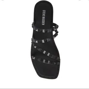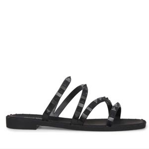 Trimmed in edgy pyramid studs, this strappy slide gives your favorite looks a festive finishing touch.