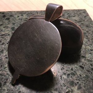 Approx. 2 1/8 in. long from top of bail to bottom silver ball detail and 1 3/8 in.