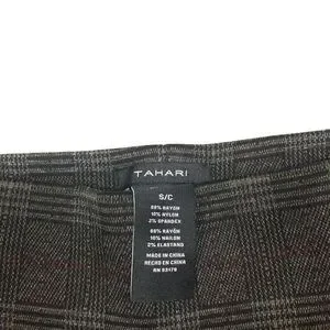 These are NWT Tahari WindowPane Glen Plaid Leggings, size Small. Nice thick material to keep your legs warm . Black, grey and burgundy plaid with a thick 3” waistband. Length is approx. 39”; waist is approx. 14 1/2”. 88% rayon; 10% nylon; 2% spandex. Comfy, Casual, Classy.