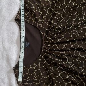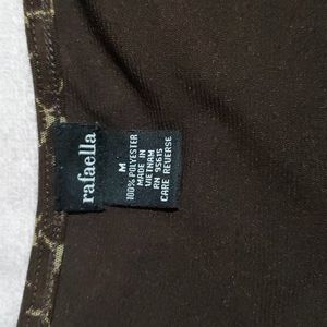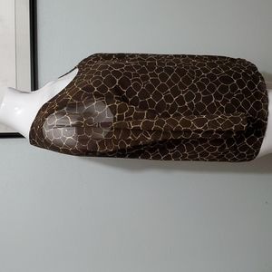 RAFAELLA Women's Brown/Cream Print Blouse. Featuring a scoop neckline and sheer 3/4 sleeves. Body is fully lined. Size Medium.
