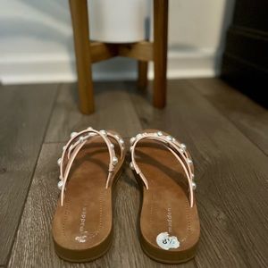 Madden Girl sandals. Blush Pink with Pearls. Size 8.5 but fit’s more like an 8. Tried on and worn around the house never outside. Dress up or down! Cute with dresses, jeans, or shorts! Smoke free and pet free home. Steve Madden/