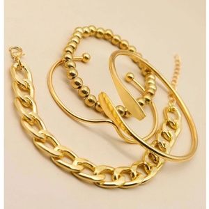 Set of 4 Fashion Bracelets Link Chain Cuff Design Yellow Gold tone