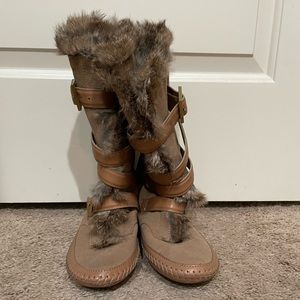 Tory Burch Jaden Genuine Rabbit Fur Lined Leather Moccasin Boots