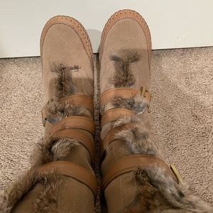 -Suede and leather upper/genuine rabbit fur lining/rubber sole