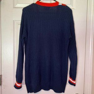 This sweater is giving Princess Diana vibes! Vintage from the 90s or 00s. Slight vintage wear, but still in great preloved condition. Nothing too noticeable, slight stretchy at the shoulder from hangers for example. Loose knit and slightly stretchy. Could fit like a sweater dress depending on the fit. Tag size is women’s small, would work best as a sweater for medium and as a dress for x-small to small. Lying flat, this is approx. 19 in ptp and 29 in tall. Color is more accurate to a red-orange color in person.