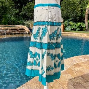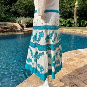 Fun sequined stitched turquoise and white knee length skirt
