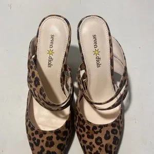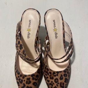 Seven dials tan/black animal print slides with 2.2” heel size 6 NWT