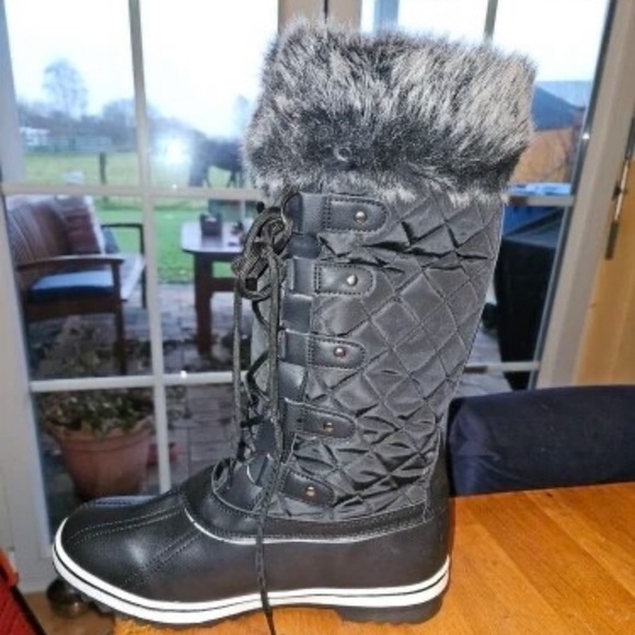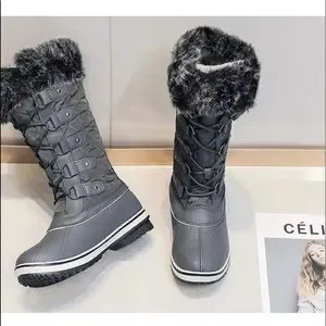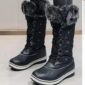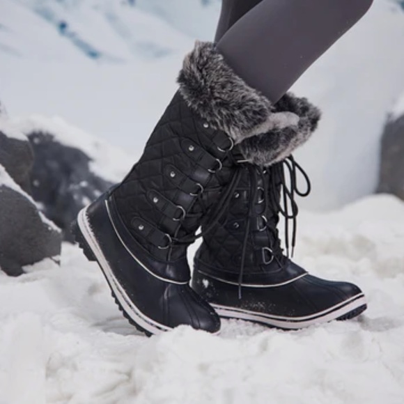 Tags- Sorel style, warm boots, winter boots, comfy, comfortable boots, faux fur boots, faux fur lined, rubber sole, rain and winter boot, lace up boots
