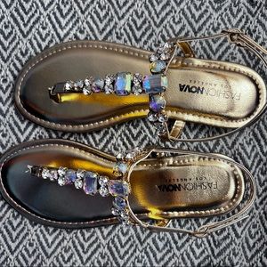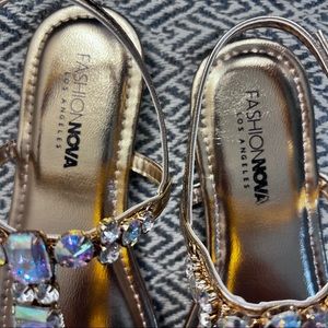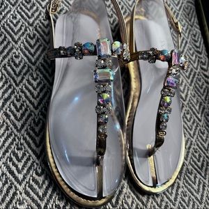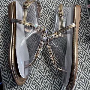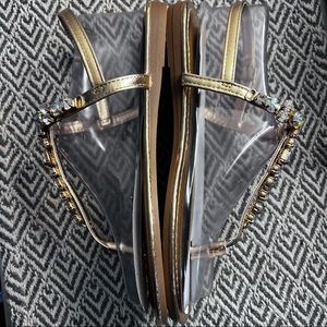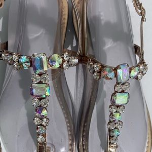 Rose gold flat sandals with gemstones
