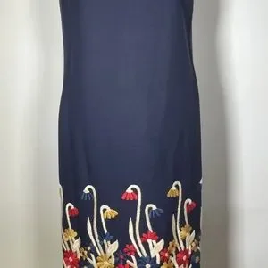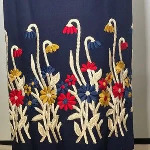 Fern Violette DRESS Mod 1960s Embroidered Navy Blue