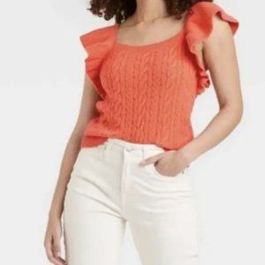 A New Day Orange Ruffle Sleeve Cableknit Sweater nwt
