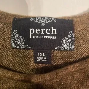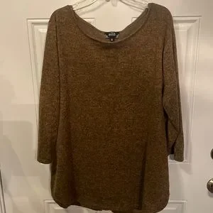Brown lightweight sweater. Bows down the back with slit on the bottom. Women’s size 1X. Excellent preowned condition. Worn once.
