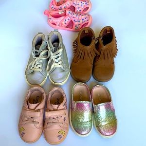 Toddler size 6. 5 pairs of shoes. Gently used condition. Still lots of life left.