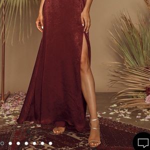 Lulu’s Constantine Burgundy Satin Maxi Dress