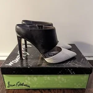 Sam Edelman black and white leather pump, with detailing on the white. barely worn. excellent condition. size 7. comes in original box.
