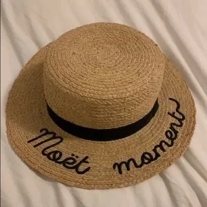 Rare collectors items. Never worn straw hat from champagne brand Moët & Chandon. Features “Moët Moment” embroidery. Great for summer and for any champagne lover!