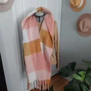 fluffy acrylic scarf plaid pattern no manufacturer label