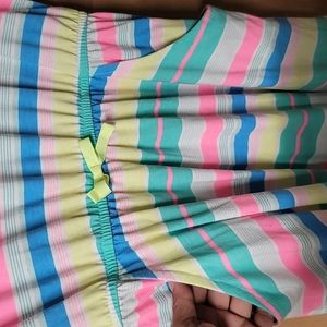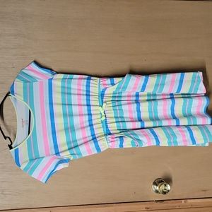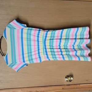 This colorful cotton blend dress has front pockets and little bow for style..gently worn