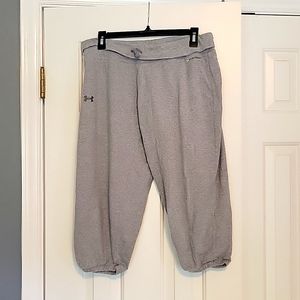 Under Armour Charged Capri jogging pants with cuffed legs. These are like new, only worn twice. Size Large. These are a thinner cotton and very comfortable. They Have A Comfy Fold-Over Waistband With Drawstrings And Elastic Around The Bottom Cuff Of Legs Which Prevents Them From Riding Up.