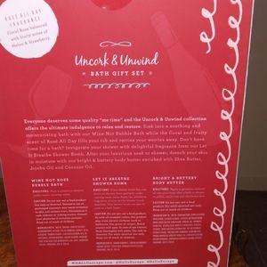 Everyone deserves some quality me time and the Uncork & Unwind collection offers the ultimate indulgence to relax and restore. Sink into a soothing and moisturizing bath with our Wine Not Bubble Bath while the floral and fruity scent of Rose All Day fills your tub and carries your worries away. Don’t have time for a bath? Invigorate your shower with a delightful fragrance from our Let It Breathe Shower Bomb. After your luxurious soak or shower, drench your skin in moisture with our Bright & Buttery Body Butter enriched with Shea Butter, Jojoba Oil and Coconut Oil.