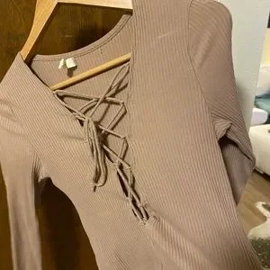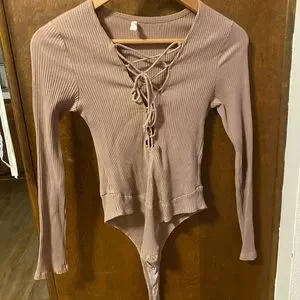 Ribbed bodysuit with lacing/tie on the front. Size S/M