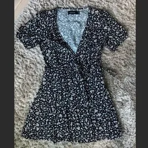 Perfect condition, worn 2 times. Size small but wrap is adjustable so would fit a medium imo. Cute small print pattern.