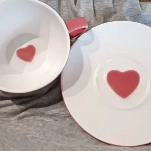 STARBUCKS 2005 Pink Heart Coffee/Tea Cup With Saucer Plate. Collectibles..